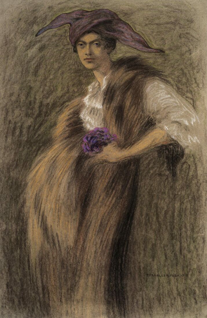 Portraits were a prime subject, as symbolism also explored mankind’s place in the world. In a large number of pastel drawings, Tyra Kleen depicts people she met on her travels and in her circle of friends – elegant women, handsome men, and mysterious children. The curving art nouveau style is found in many of her pictures, giving them a sensual quality.