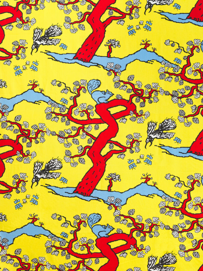 Carl Johan De Geer började producera stormönstrade fantasifullt expressiva textiltryck i starka och kontrastrika färgkombinationer i början av 1960-talet. Det var en revolt mot tidens brunmurrigt diskreta ideal och uppväxtens estetiska värderingar. Med form och färg ville han påverka hela samhället.